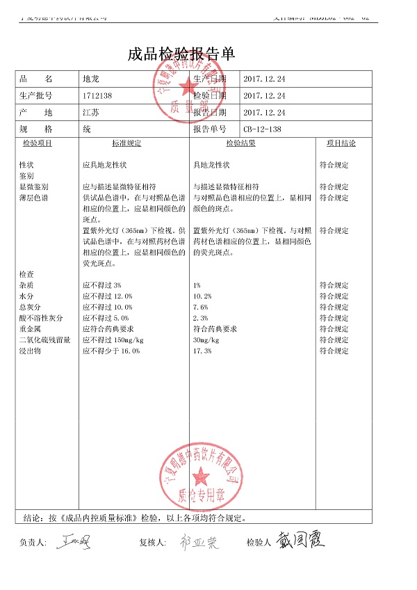 2020年質(zhì)檢報告