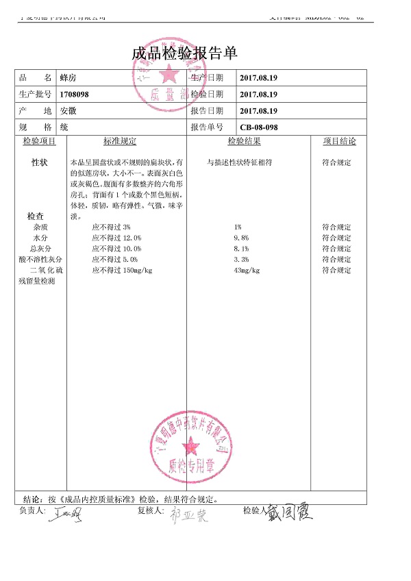 Microsoft Word - 1708098蜂房檢驗報告1.doc83