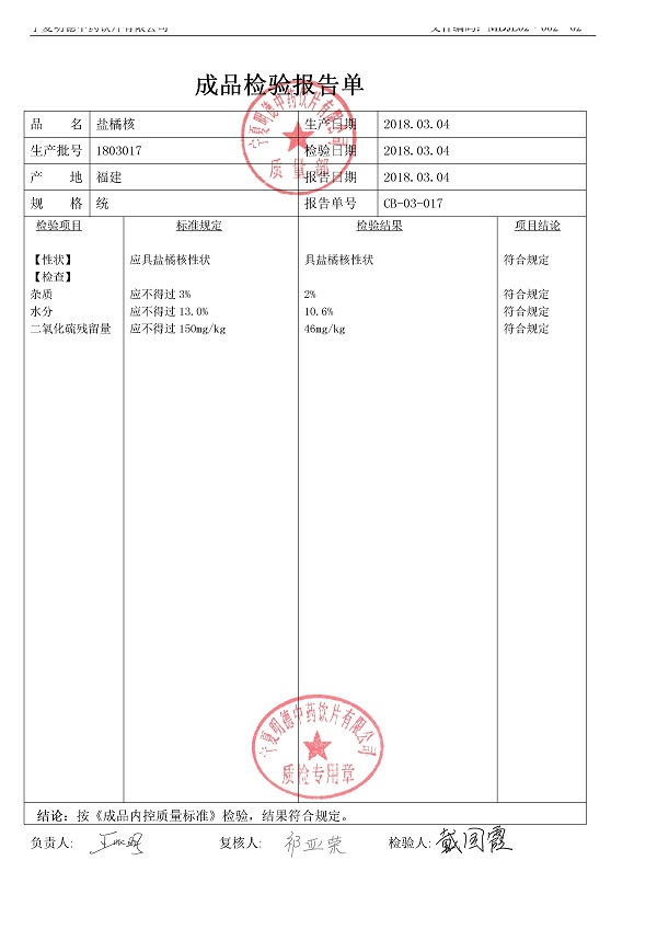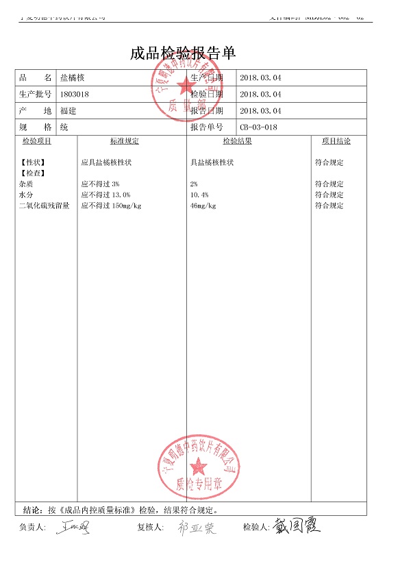 2018年質(zhì)檢報告