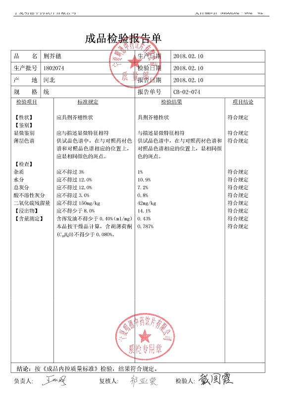 2018年質(zhì)檢報告