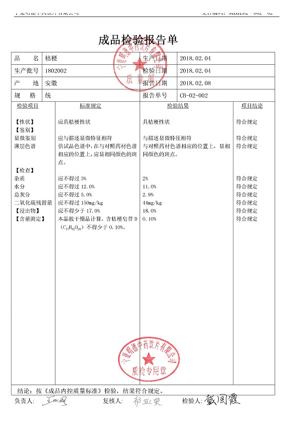 2018年質(zhì)檢報(bào)告