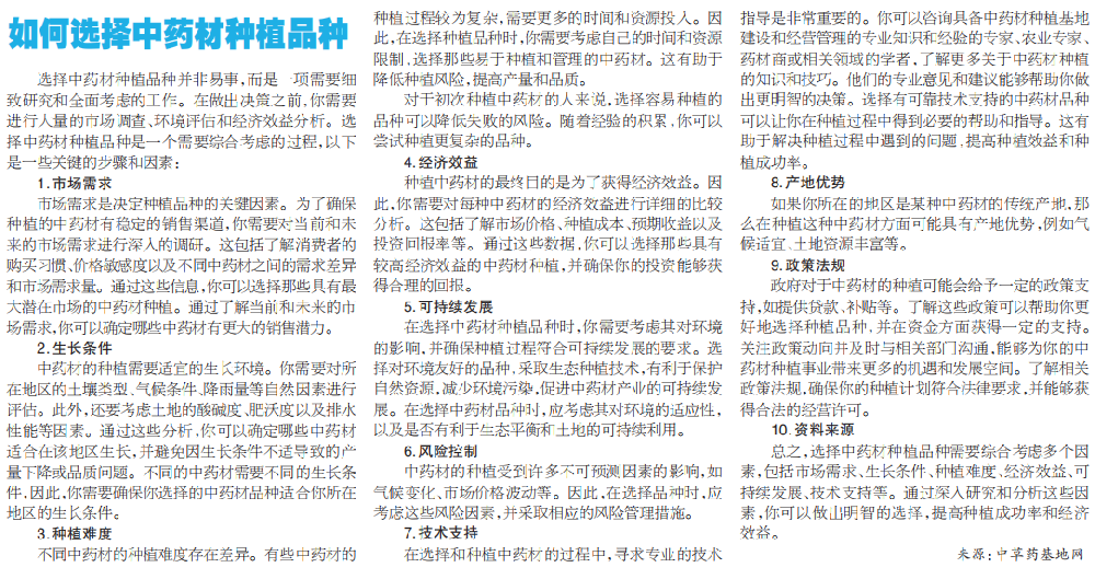 如何選擇中藥材種植品種